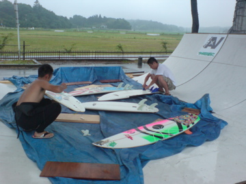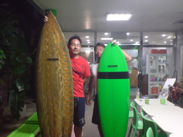 今後は2010年に向けて5'8"台のサーフボードの開発、主にスタンダードモデルを中心にデザインして行こうという話しに、先程MAURICIOと打ち合わせました。