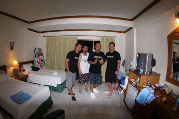 一番左手の奥は今回初プーケット上陸を果たした、プロスノーボーダー、12Snowboardの西田 洋介さん。