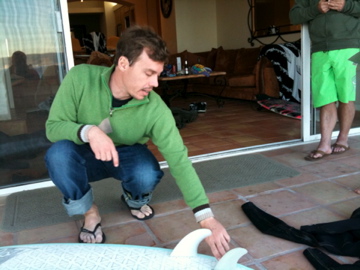 毎回海から上がるごとに、この様にテールのデザインから、フィンのデザインまで色々な話しをしながら、過ごしていました。
