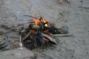 夕方には皆でたき火を囲んで