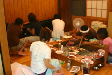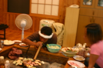 宴は最高潮に盛り上がり、ギターに島焼酎、おいしいお肉や、野菜。