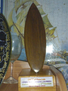 その内容は、先月末より順延されていたKalim surf contestが先週末に開催され、そのShort boardの部門で3位になったとのことです。