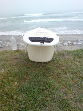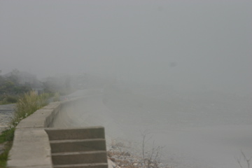 さすがここの波。これまた貸し切り状態で、乗り放題。満喫出来ました。あのとんでもない後輩も今回は参加したのですが、彼が入水後たちまち霧が発生して、このような状態に(笑)。神は観ていますね。